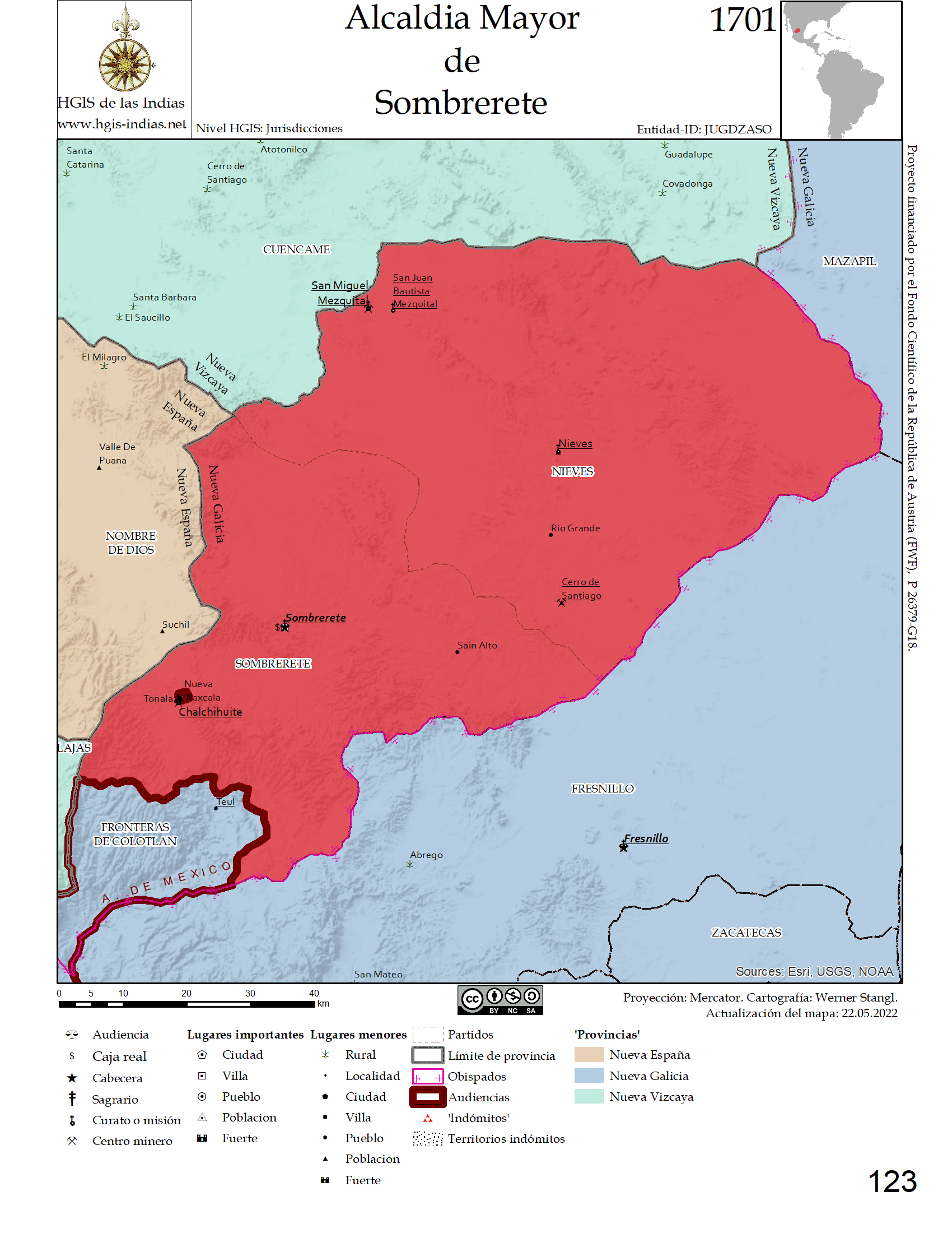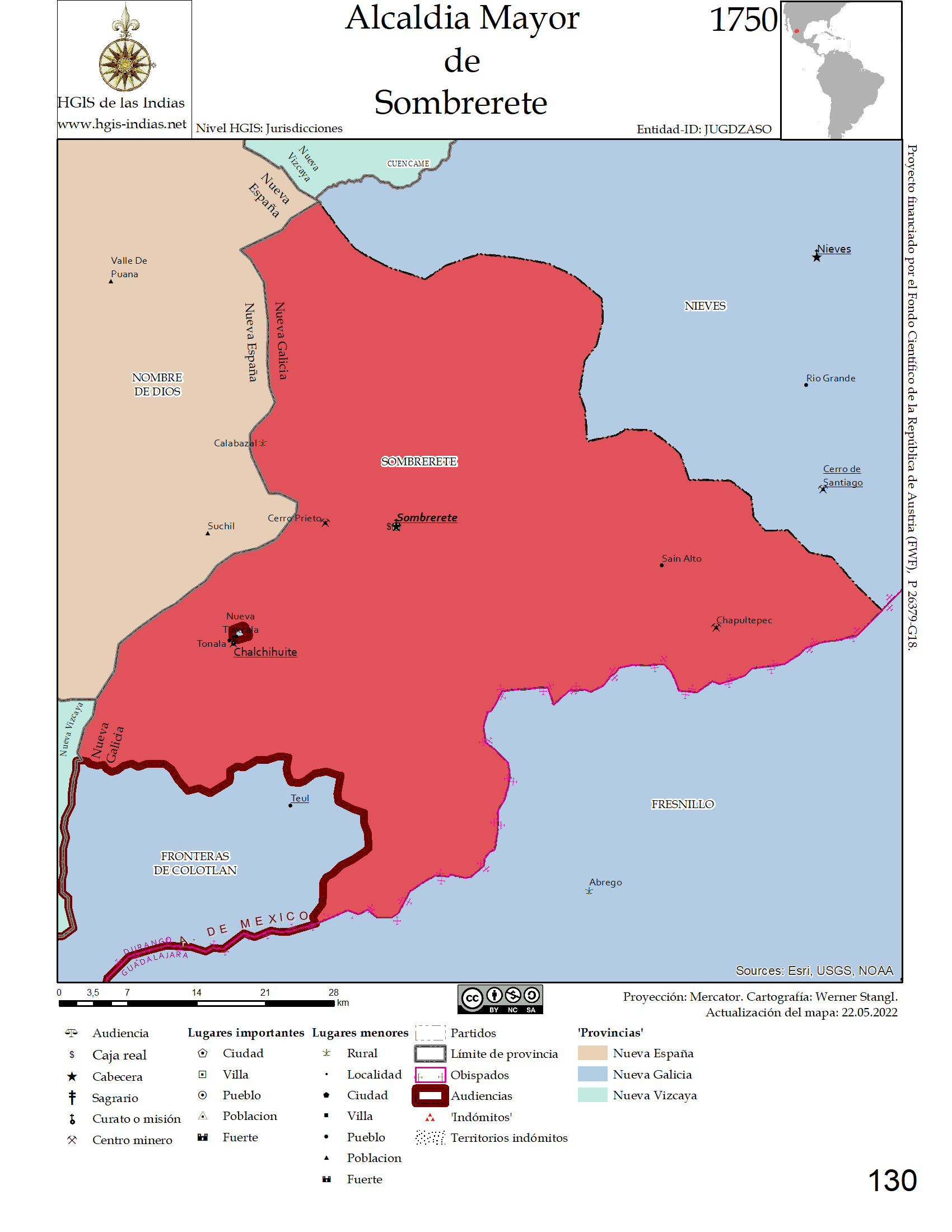 "Sombrerete, Jurisdiccion (Nueva Galicia y Septentrion)", Werner Stangl (ed.), Compendio digital de Indias. Retrieved
